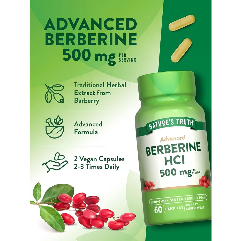 Nature's Truth Berberine HCl 500mg | 60 Capsules