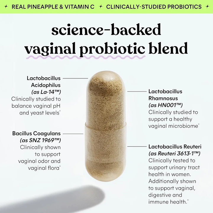 WORLD-CLASS PROBIOTICS BACKED BY SCIENCE: Formulated with 4 highly researched, clinically-tested probiotic strains (L. acidophilus, L. rhamnosus, Bacillus coagulans and L.reuteri) for vaginal & urinary tract health.